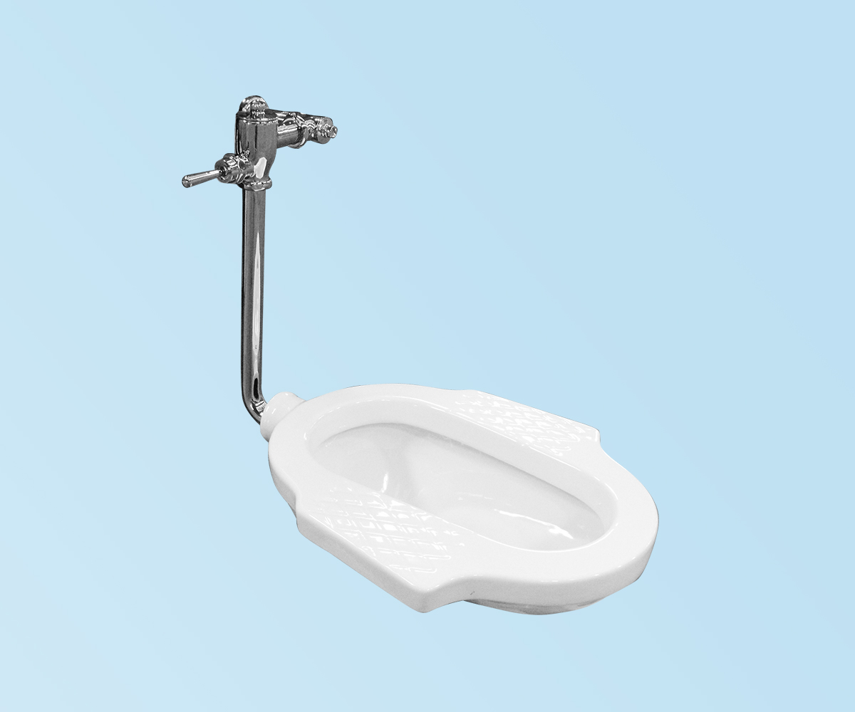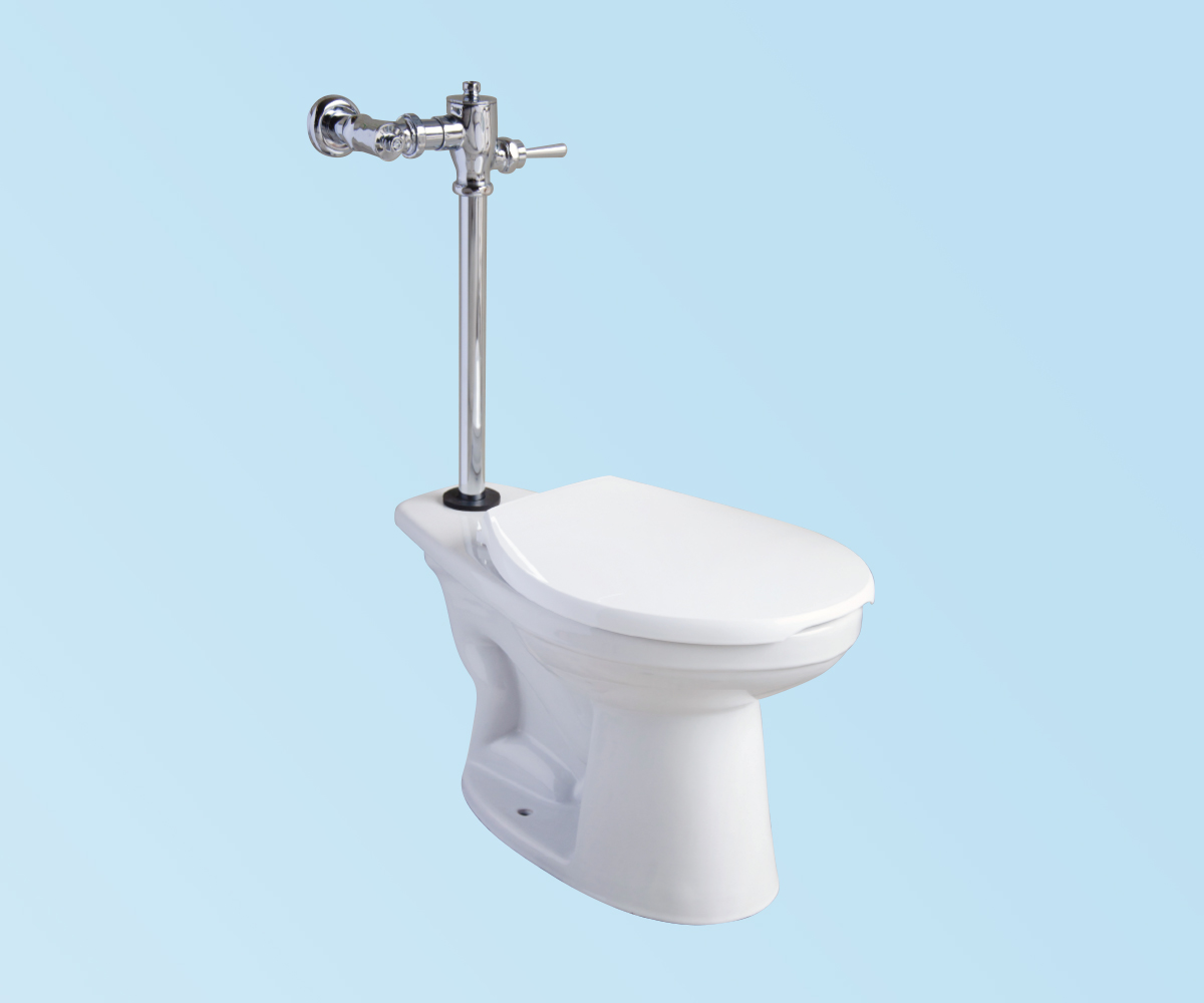โถสุขภัณฑ์นั่งยองมีฐานสูง ใช้ฟลัชวาล์ว